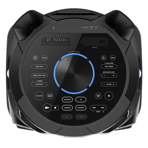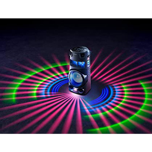 پخشکننده خانگی مدل MHC-V73D یک سیستم صوتی ایستاده و قدرتمند است که بهطور تخصصی برای مهمانیها و فضاهای بزرگ طراحی شده است. این دستگاه با ابعاد کلی 42.8x92.1x37 سانتیمتر و وزن 21.2 کیلوگرم، بدنهای مقاوم از ترکیب چوب و پلاستیک دارد و با داشتن چرخهای حمل، جابهجایی آسانی پیدا میکند. این مدل با بدنه مقاوم در برابر پاشش آب، نگرانی شما را از بابت محیط مهمانی برطرف میکند. این پخشکننده با توان خروجی اسمی 1400 وات و توان 195 وات RMS، صدایی بسیار بلند و باکیفیت ارائه میدهد. ساختار صوتی آن شامل یک سابووفر 12 اینچی، چهار توییتر و یک بلندگوی اصلی است که بهلطف تکنولوژیهای Omnidirectional Party Sound و JET BASS BOOSTER، صدایی 360 درجه و باس عمیق و کوبنده ایجاد میکند. رقص نور تک رنگ آن نیز هیجان مهمانی را دوچندان میکند. قابلیتهای ارتباطی این دستگاه بسیار گسترده است. علاوه بر فناوری Bluetooth و USB Type-A، خروجی HDMI (ARC) امکان اتصال باکیفیت به تلویزیون را فراهم میسازد. همچنین، این سیستم دارای درایو نوری DVD و CD است و از فرمتهایی نظیر DVD±R/RW پشتیبانی میکند. ورودی میکروفون، قابلیتهای Karaoke و TAIKO Mode، این دستگاه را به یک مرکز سرگرمی تبدیل میکند. مدیریت آسان تنظیمات نیز از طریق پنل کنترلی با حرکات عمودی و افقی، اتصال فوری NFC و نرمافزارهای موبایل Music Center و Fiestable انجام میشود. اقلام همراه این پخشکننده شامل ریموت کنترل، کابل برق و دفترچه راهنما است.